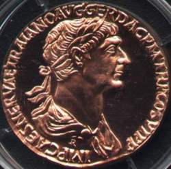 Junto con Octavio Augusto, Marco Ulpio Trajano ha pasado a la historia como el más grande de los Emperadores. Durante su “reinado” se acuñaron unas monedas: en el anverso la efigie de Trajano y en el reverso una leyenda: Libertas, Concordia, Iustitia y Felicitas.