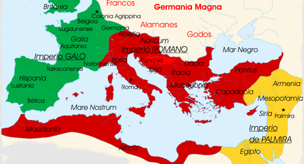 La secesión del Imperio Romano en tres grandes regiones acaecida durante el reinado en solitario de Galieno (260-268): Imperio Galo, Imperio de Palmira e Imperio Romano, no contaba con el beneplácito del Senado y un importante sector de la milicia. Es cierto que, en un principio, por las luchas internas y la anarquía militar que abarcaba el vasto territorio imperial, fue una solución que evitó las incursiones enemigas por distintas zonas del reino: por el Norte los francos, por el Noreste los alamanes, por el Este los godos, y por Oriente los sasánidas (persas).